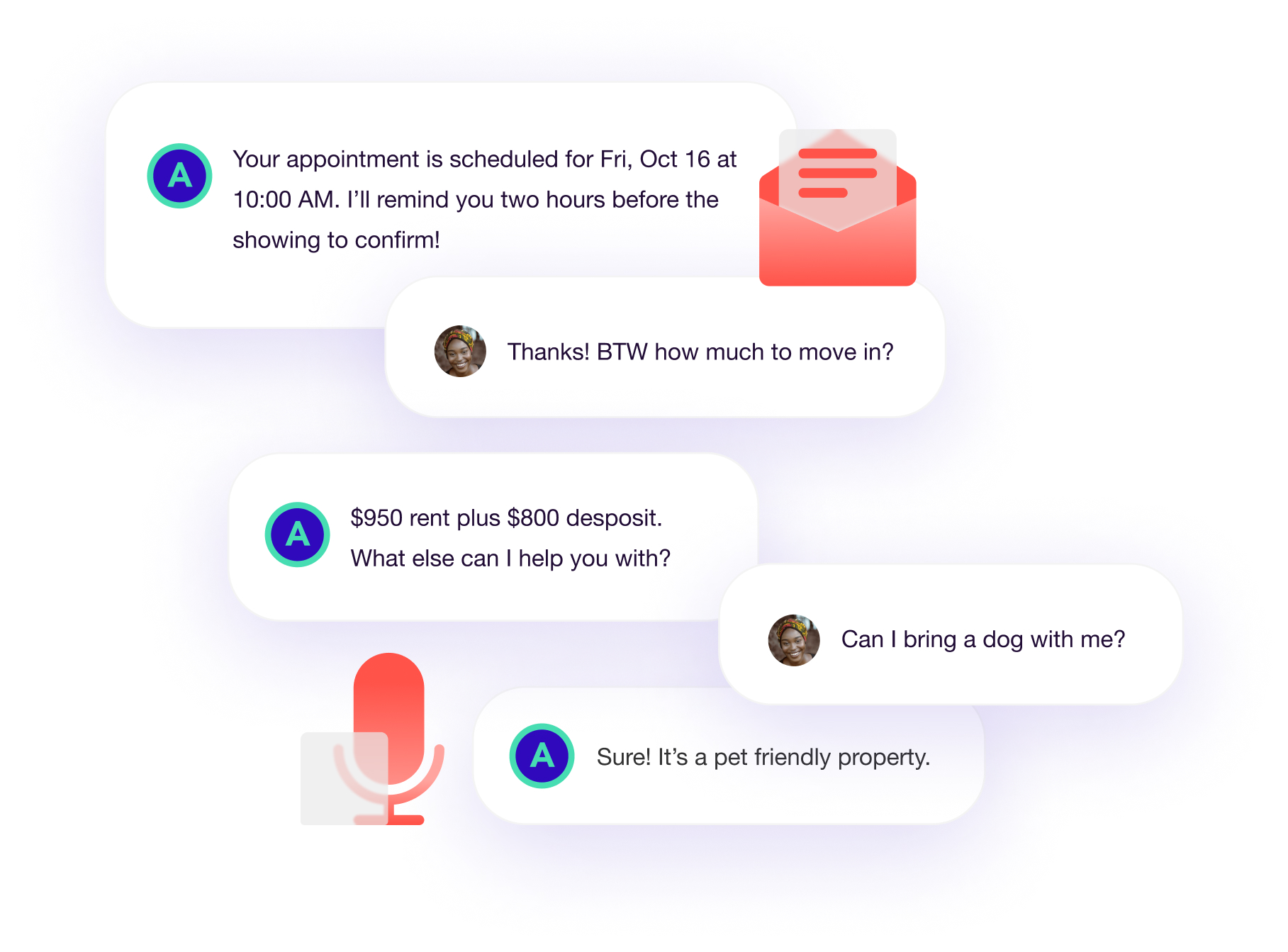 Multi-Channel: AiLea provides real-time responses over email, text message, and even voice conversation. AiLea works with millions of renters and property management teams, with proven success.